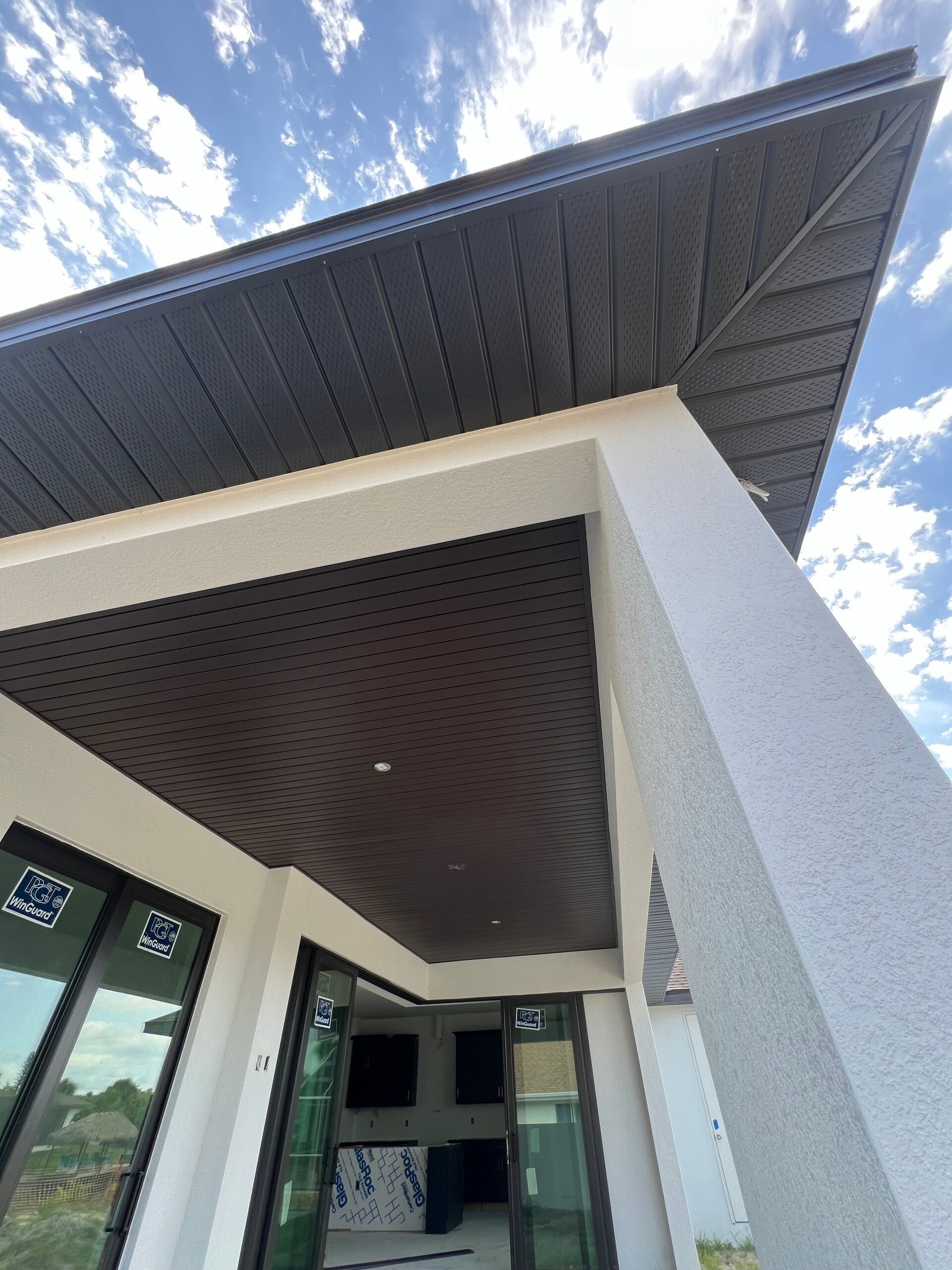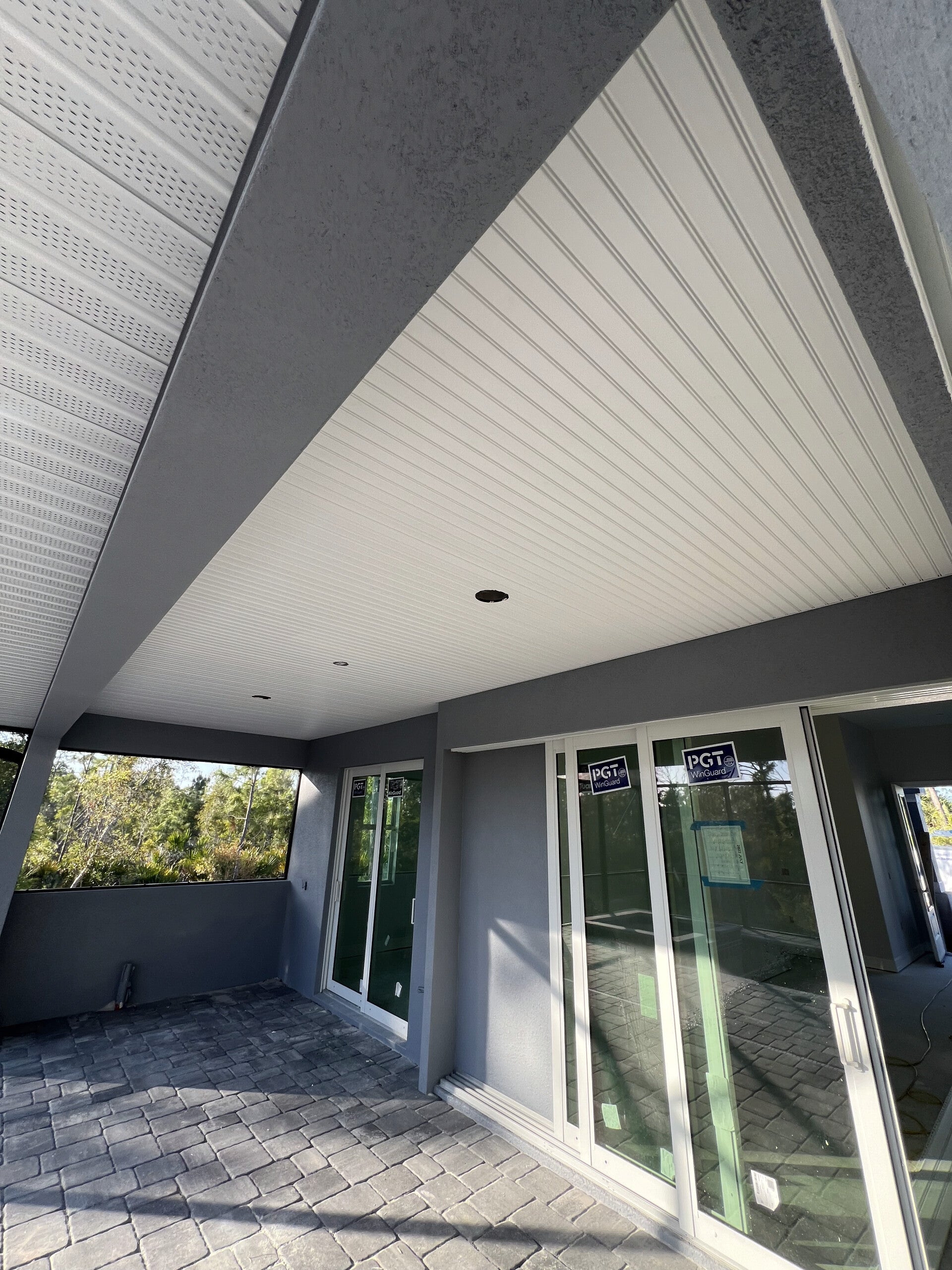 At Bri-Gon Construction, Inc., we specialize in transforming outdoor living spaces with beautiful and durable vinyl soffit installations. Our gallery showcases projects where we've replaced problematic drywall ceilings with maintenance-free vinyl soffits, adding lasting value and beauty to homes throughout Charlotte County, Florida. Serving S.W. Florida since 1982, we are a Florida state licensed and insured contractor, specializing in quality installations and repairs.